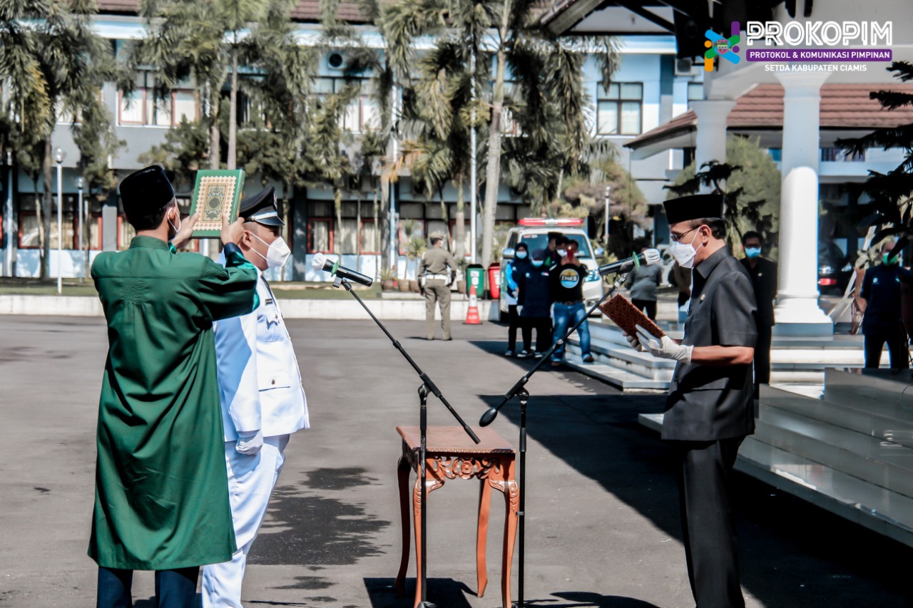 Acara pelantikan disaksikan oleh Wakil Bupati Ciamis, Sekretaris Daerah, Asisten Daerah, Unsur Forkopimda dan para OPD terkait di lingkungan Pemkab Ciamis secara virtual.