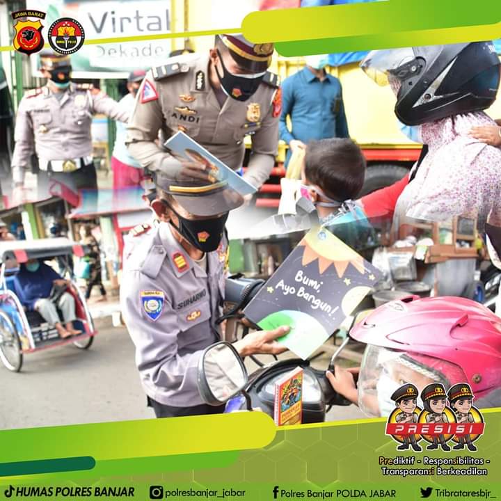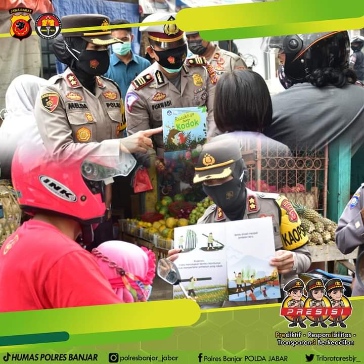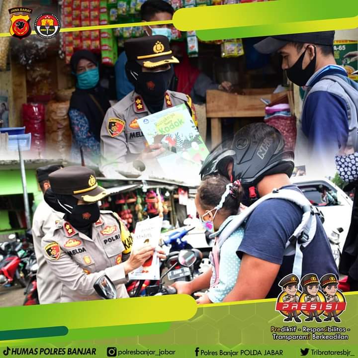 KOTA BANJAR — Kapolres AKBP. Melda Yanny, S.IK., MH, didampingi Para Kasat, Perwira, dan Personel Polwan Polres Banjar Polda Jabar melaksanakan berbagai cara dan upaya dalam menghadapi pandemi Covid-19 ini, salah satu diantaranya dengan membagikan buku-buku bacaan maupun buku gambar bagi anak-anak yang bertempat di Pasar Kota Banjar Provinsi Jawa Barat, Rabu (17/03/2021).