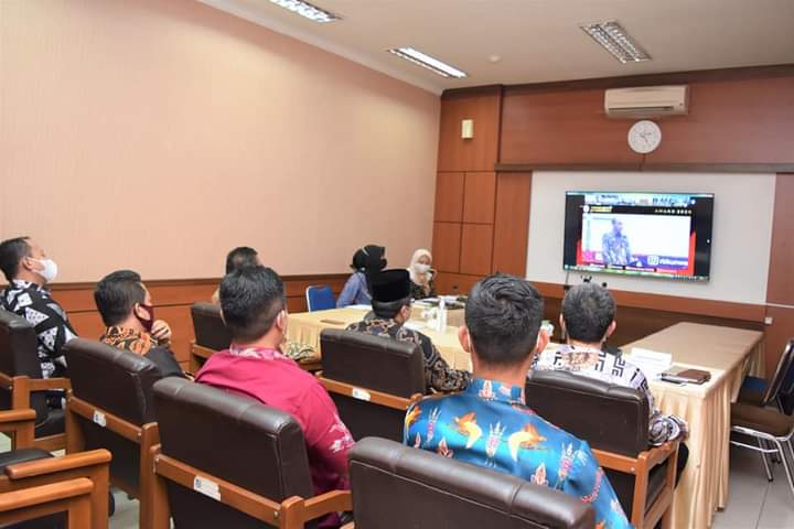 TASIKMALAYA — Pemerintah Daerah (Pemda) Kabupaten Tasikmalaya mengikuti acara penyerahan hasil evaluasi pelaksanaan reformasi birokrasi (RB) dan akuntabilitas kinerja instansi pemerintah provinsi/kabupaten/kota tahun 2020 secara virtual langsung dari Auditorium Kementerian PANRB Jakarta Pusat, Kamis (22/04/2021).