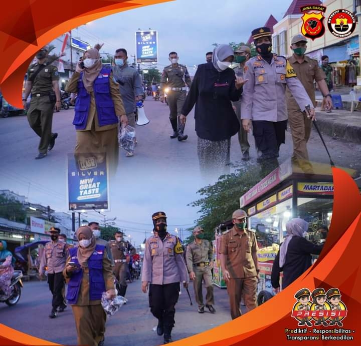 KOTA BANJAR — Kapolres AKBP. Melda Yanny, S.IK., MH, bersama Walikota Banjar Dr. Hj. Ade Uu Sukaesih, M.Si, serta petugas Satgas percepatan penanganan Covid-19, dan Personel Polres Banjar memantau masyarakat yang Ngabuburit atau mengisi waktu menjelang waktu berbuka puasa di Pasar Langensari, Kamis (22/04/2021) sore.