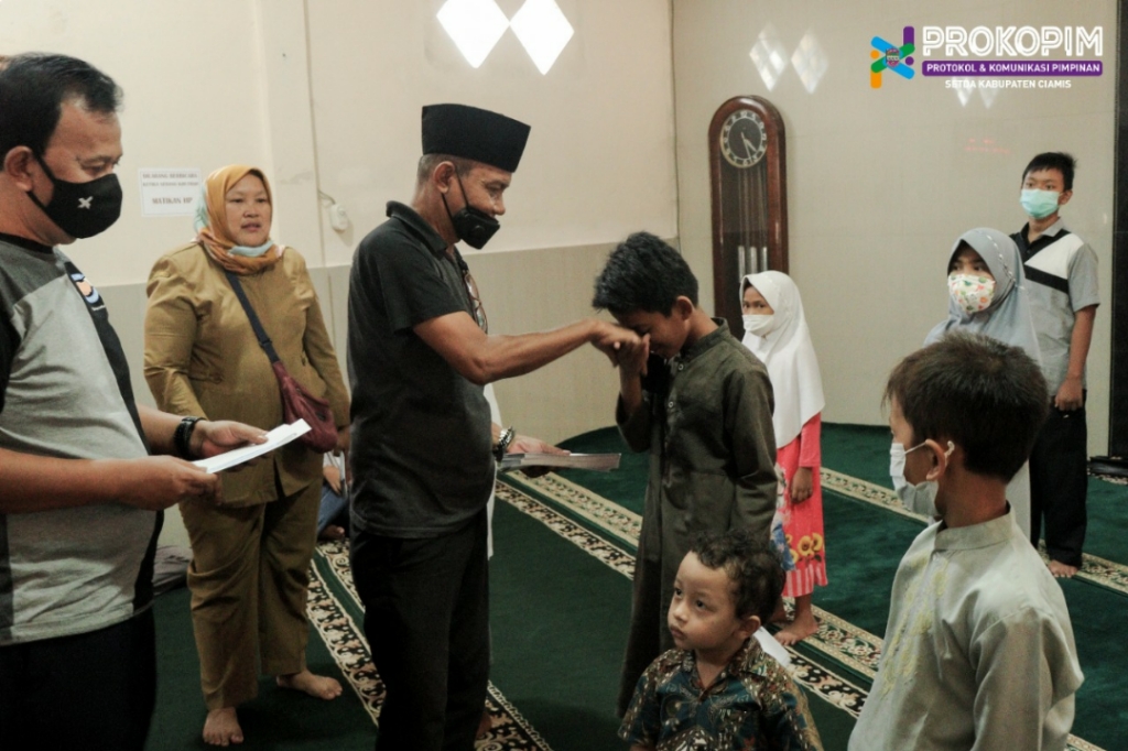 CIAMIS — Baraya Lintas Kota bersama Wakil Bupati (Wabup) Yana D Putra menyerahkan santunan kepada Anak yatim dan Dhuafa bertempat di Masjid At- Taqwa Lingkungan Kota Kidul Kelurahan – Kabupaten Ciamis Provinsi Jawa Barat, Senin (26/04/2021).