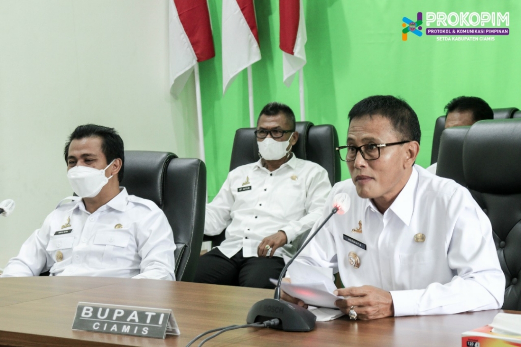 Dalam kegiatan tersebut Bupati didampingi Wakil Bupati, Sekretaris Daerah, Para Asisten Daerah, Kepala Bappeda Ciamis serta diikuti oleh seluruh unsur Forkopimda dan pihak terkait lainya melalui Virtual. (Fauzi).