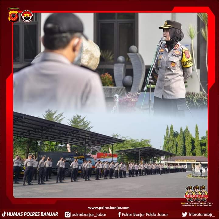 BANJAR — Kapolres Banjar AKBP. Melda Yanny, S.IK., MH, pimpin apel siaga dalam rangka Hari Buruh Internasional yang bertempat di Halaman Mapolres Banjar Polda Jabar, Sabtu (01/05/2021).