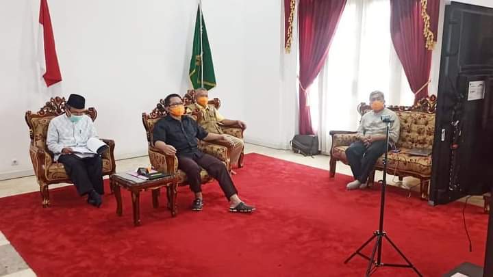 TASIKMALAYA — Bupati Tasikmalaya H. Ade Sugianto, S.IP, mengikuti Rapat Koordinasi (Rakor) Komite Kebijakan Penanganan Covid-19 dan Pemulihan Ekonomi Daerah (PED) Provinsi Jawa Barat melalui video conference bersama Gubernur Jawa Barat Ridwan Kamil, bertempat di Pendopo Lama Kabupaten Tasikmalaya Provinsi Jawa Barat, Jum’at (07/05/2021).