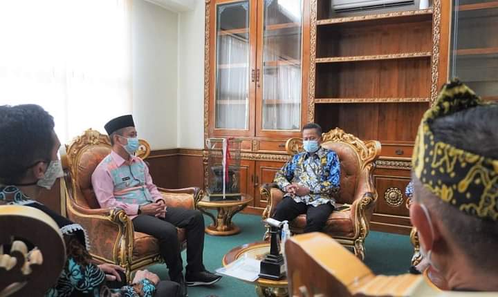 TASIKMALAYA — Wakil Bupati (Wabup) Tasikmalaya H. Cecep Nurul Yakin menerima kunjungan Kepala Dinas Perpustakaan dan Kearsipan Daerah (Dispusipda) Provinsi Jawa Barat Ahmad Hadadi, bertempat di ruangan kerja Wabup Sekretariat Daerah Kabupaten Tasikmalaya Provinsi Jawa Barat, Kamis (06/05/2021). Turut hadir Duta Baca Jawa Barat asal Kabupaten Tasikmalaya Muhammad Rafa Ridwanullah.