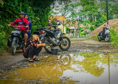 TASIKMALAYA — Pemuda Kecamatan Sodonghilir yang tergabung dalam Himpunan Pelajar Pemuda dan Mahasiswa Sodonghilir (HIPPAMAS) melakukan aksi memancing di kubangan jalan jalur Taraju – Sodonghilir dan Gununganten – Parumasan Kabupaten Tasikmalaya Provinsi Jawa Barat, Jum’at (07/05/2021).