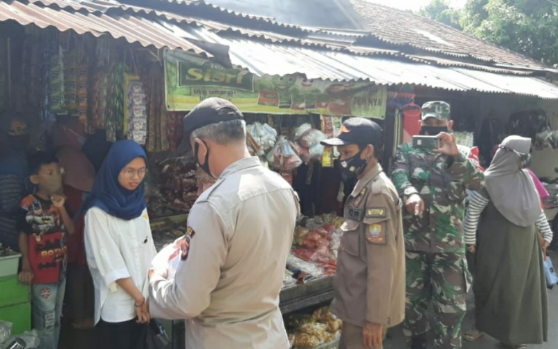 SUMEDANG — Personil gabungan TNI, Polri, dan Sat Pol PP, melaksanakan kegiatan operasi yustisi penggunaan masker, bertempat di Pasar Darmaraja Kecamatan Darmaraja Kabupaten Sumedang Provinsi Jawa Barat, Senin (10/05/2021).