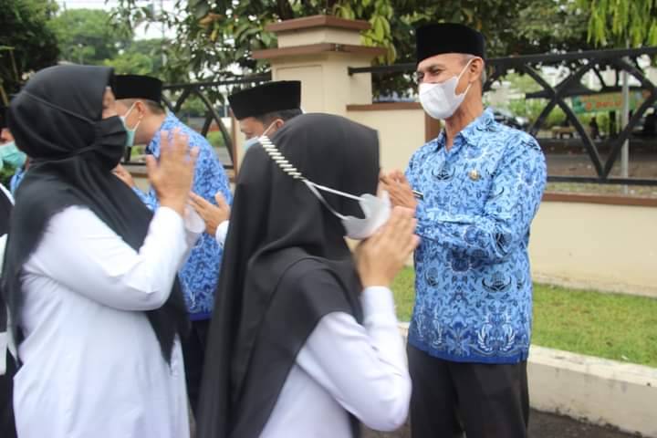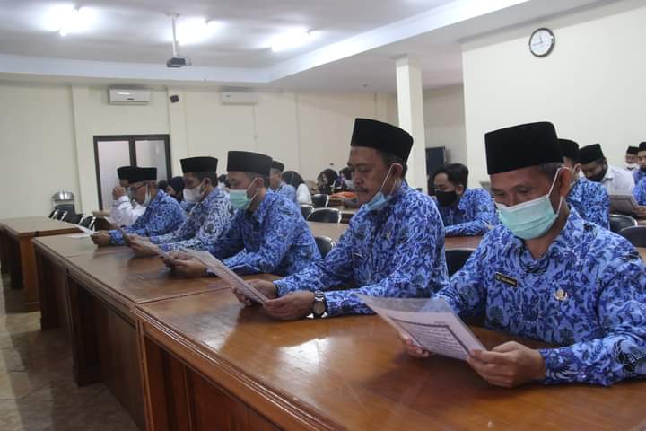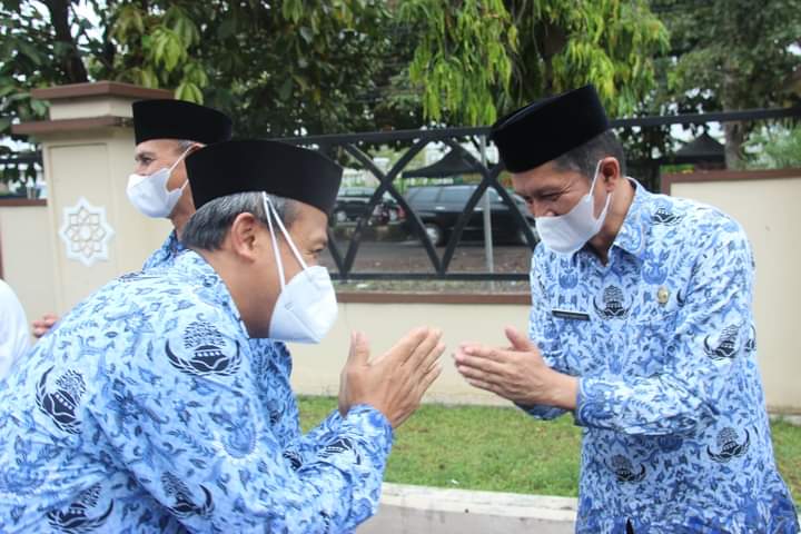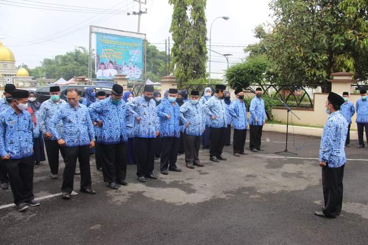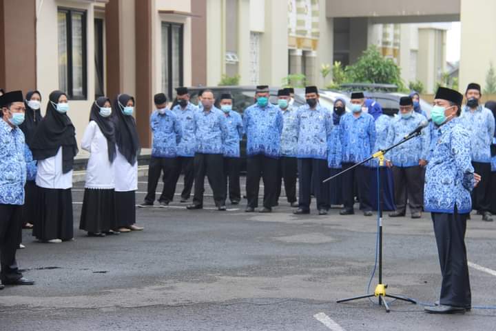 TASIKMALAYA — Semangat baru setelah libur Hari Raya Idul FItri 1442 H, Pegawai Kantor Kementerian Agama (Kemenag) Kabupaten Tasikmalaya mengawali aktivitasnya dengan melaksanakan Apel Pagi sekaligus bermushofahah yang dipimpin langsung oleh Kepala Kantor Kemenag Drs. H. Usep Saepudin Muhtar, M.Pd, bertempat di halaman Kepala Kantor Kemenag Kabupaten Tasikmalaya Provinsi Jawa Barat, Senin (17/05/2021).
