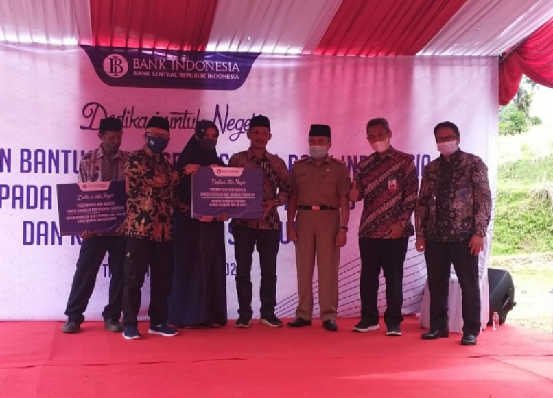 TASIKMALAYA — Guna membangkitkan dan mengembangkan berbagai komuditas dan hasil produksi sektor pertanian khususnya budi daya Kopi, Kantor Perwakilan Bank Indonesia (BI) Tasikmalaya melalui program Sosial Bank Indonesia menyerahkan bantuan kepada dua kelompok Tani di Cigalontang, bertempat di Kampung Kiarabongkok Desa Puspamukti Kecamatan Cigalontang Kabupaten Tasikmalaya Jawa Barat, Senin (31/05/2021).