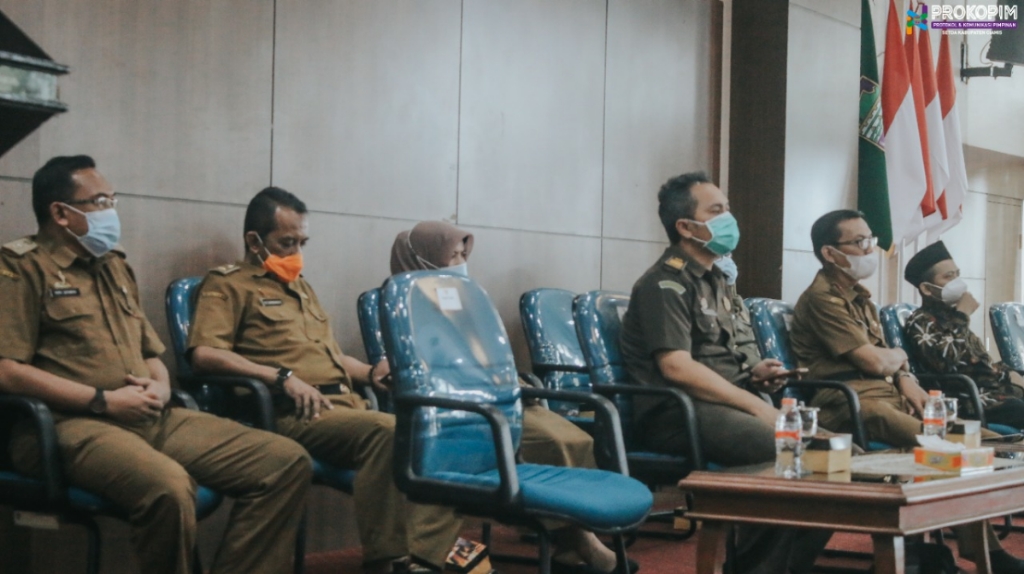 CIAMIS — Pemerintah Kabupaten Ciamis mengikuti rapat Koordinasi Komite Kebijakan Penanganan Covid-19 dan Pemulihan Ekonomi Daerah Provinsi Jawa Barat bersama Pemprov Jawa Barat secara Virtual bertempat di Aula Setda Ciamis, Selasa (15/06/2021).