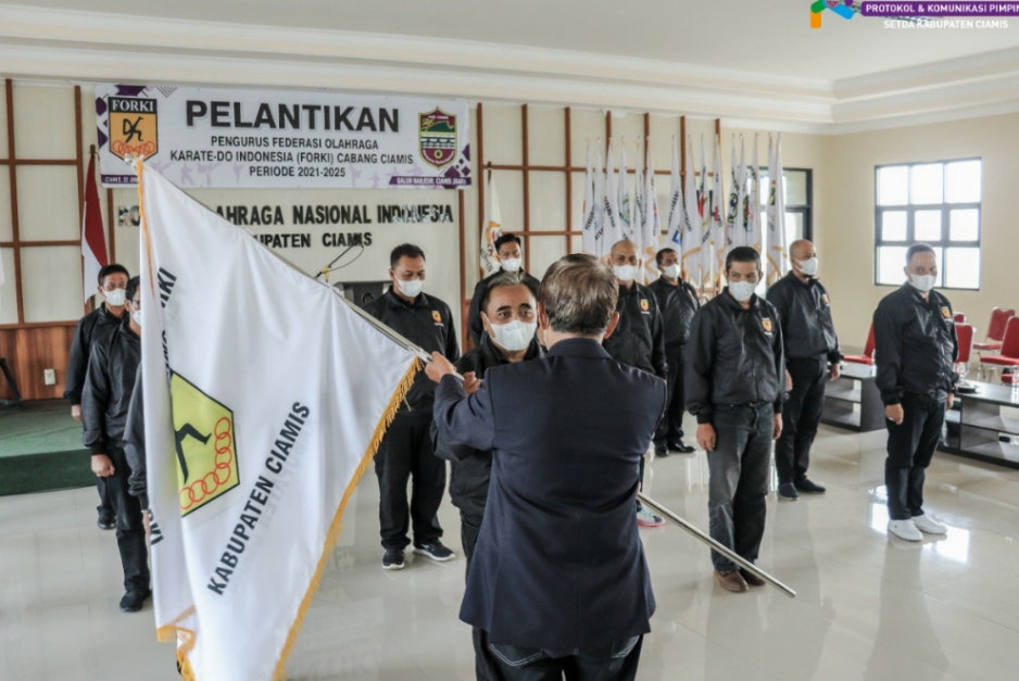 CIAMIS — Bupati Ciamis Herdiat Sunarya menghadiri pelantikan Federasi Olahraga Karate-Do Indonesia (Forki) Cabang Ciamis, bertempat di Gedung KONI Ciamis, Provinsi Jawa Barat, Selasa (22/06/2021).