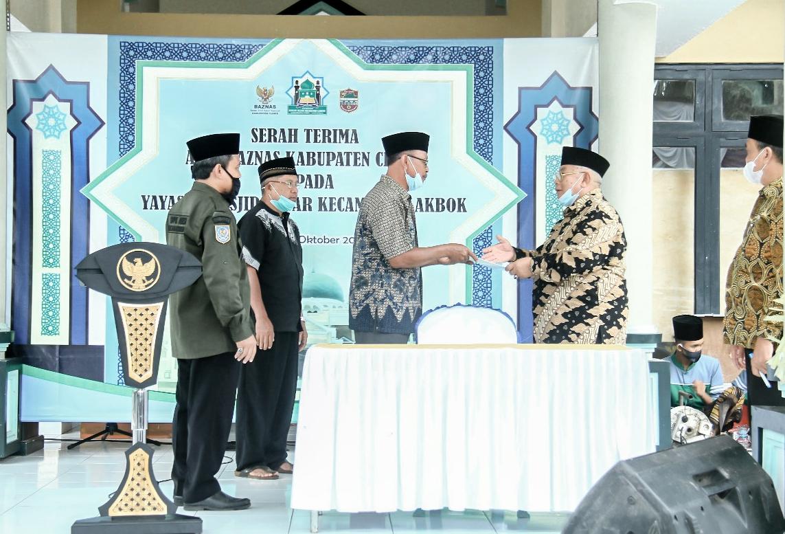 CIAMIS — Badan Amil Zakat Nasional (Baznas) Kabupaten Ciamis menyerahkan pengelolaan aset kepada Yayasan Masjid Besar Kecamatan Lakbok, Kabupaten Ciamis, Provinsi Jawa Barat, Selasa (06/10/2021).