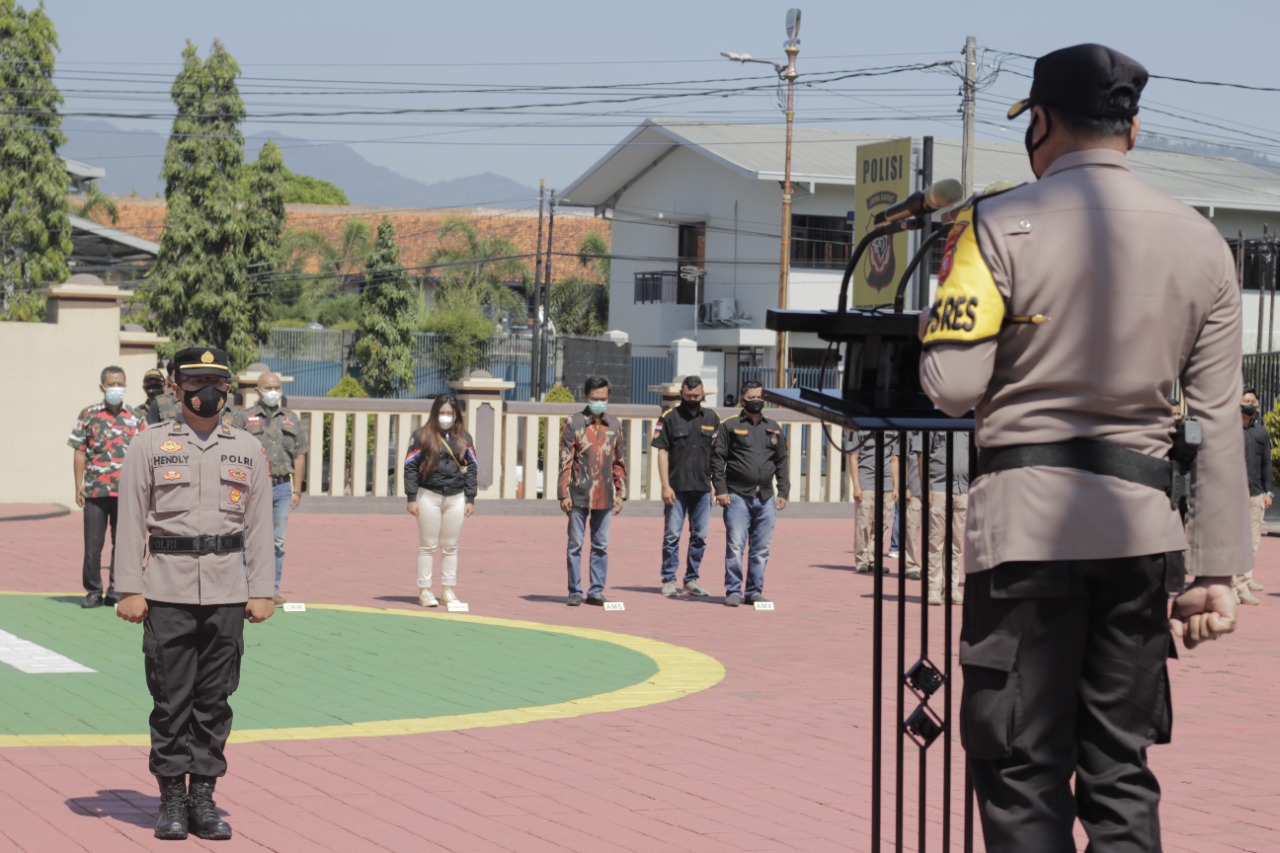 SUMEDANG — Bertempat di Mako Polres Sumedang, Kapolres AKBP. Eko Prasetyo Robbyanto, SH., S.IK., M.P.I.C.T., M.I.S.S, memimpin kegiatan apel deklarasi damai yang mengusung tema ‘Menjaga Terciptanya Situasi Kamtibmas yang Aman dan Damai di Wilayah Hukum Polres Sumedang’ dan pelaksanaan vaksin anggota LSM, Ormas dan OKP se-Kabupaten Sumedang, Provinsi Jawa Barat, Selasa (12/10/2021).