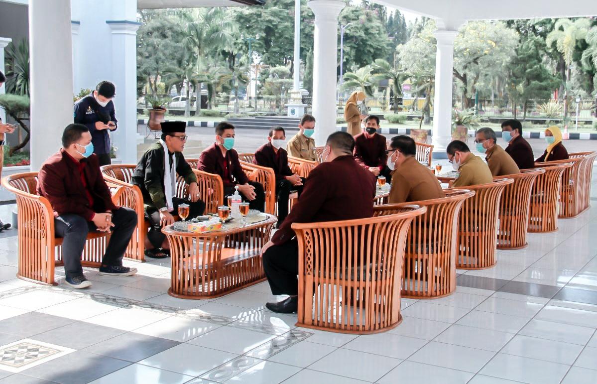 CIAMIS — Bupati Ciamis Herdiat Sunarya menerima kunjungan pengurus Persatuan Perawat Nasional Indonesia (PPNI) Cabang Ciamis, bertempat di Joglo Barat Sekretariat Daerah Kabupaten Ciamis, Provinsi Jawa Barat, Selasa (19/10/2021).