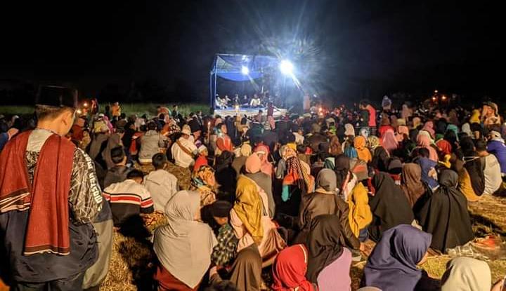 TASIKMALAYA — Dalam rangka memperingati Hari Santri Nasional tahun 2021, Pemerintah Desa Banyurasa melaksanakan Istighosah dan do’a bersama di Lapang Sepak Bola Desa Banyurasa, Kecamatan Sukahening, Kabupaten Tasikmalaya, Provinsi Jawa Barat, Sabtu (23/10/2021) malam.