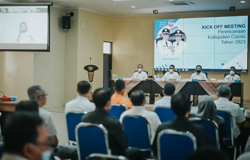 INOVATIF89.COM, CIAMIS – Pemerintah Daerah (Pemda) Kabupaten Ciamis melaksanakan kick off meeting perencanaan tahun 2023, bertempat di Aula Badan Perencanaan Pembangunan Daerah (Bappeda) Ciamis Jabar, Rabu (08/12/2021).
