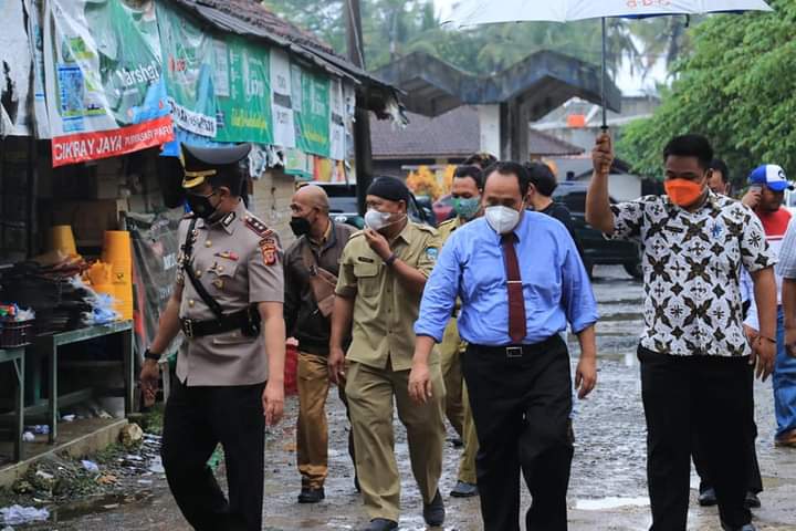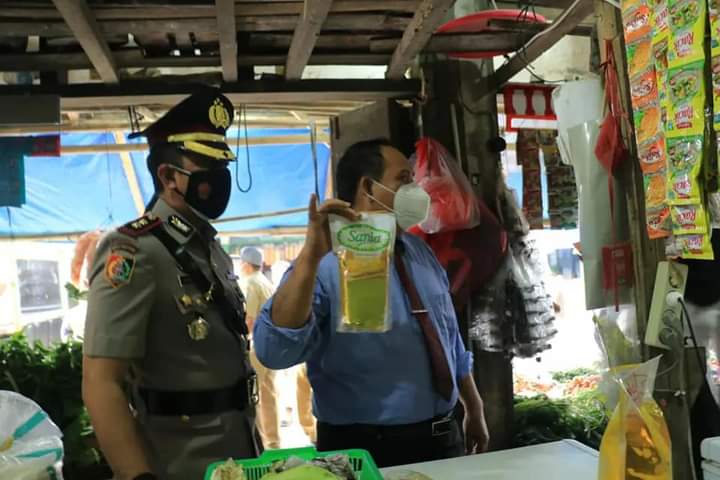 INOVATIF89.COM, PANGANDARAN – Bupati H. Jeje Wiradinata didampingi Kapolres Pangandaran AKBP Hidayat S.IK., SH, dan dinas terkait melakukan insfeksi ke Pasar Parigi Kabupaten Pangandaran, Provinsi Jawa Barat, Selasa (15/03/2022). Guna untuk memantau ketersedian minyak goreng di pasaran.