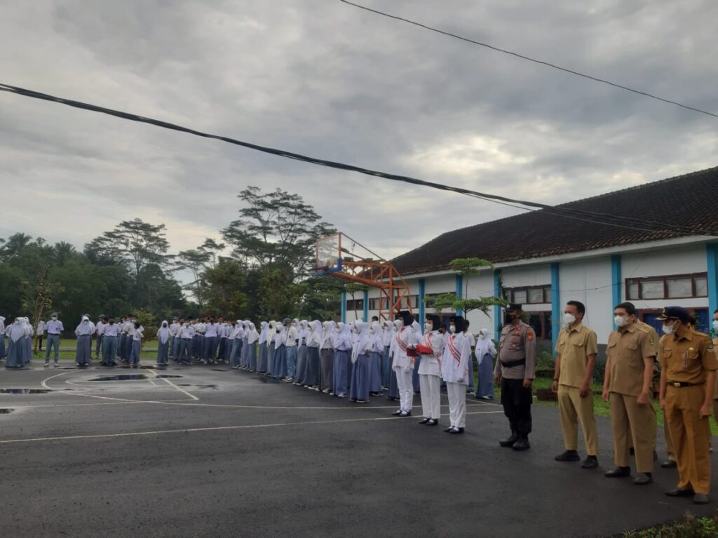 INOVATIF89.COM, TASIKMALAYA – Personil Polsek Sukaresik Polres Tasikmalaya Kota menjadi Inspektur Upacara Bendera di SMKN Sukaresik Kabupaten Tasikmalaya, Provinsi Jawa Barat, Senin (28/03/2022).