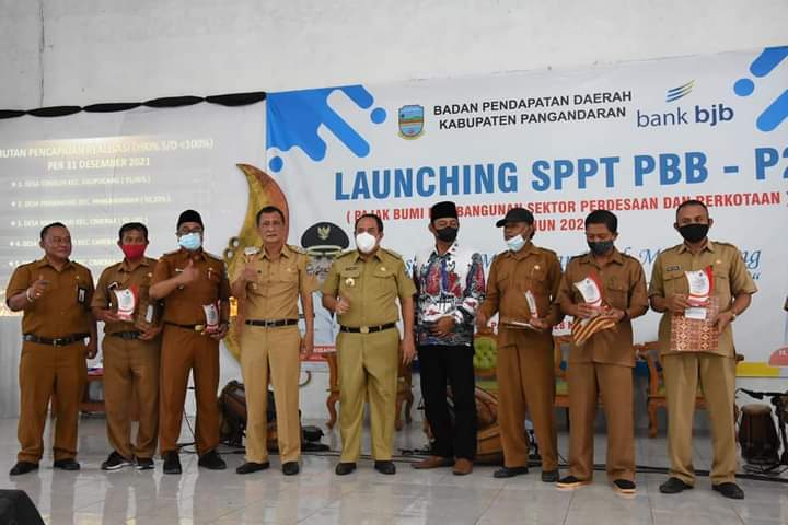 INOVATIF89.COM, PANGANDARAN – Pemerntah Kabupaten (Pemkab) Pangandaran memberikan penghargaan kepada Pemerintah Desa (Pemdes) realisasi (pembayaran) Pajak Bumi dan Bangunan (PBB) tercepat hingga 100 persen per 31 Desember 2021.