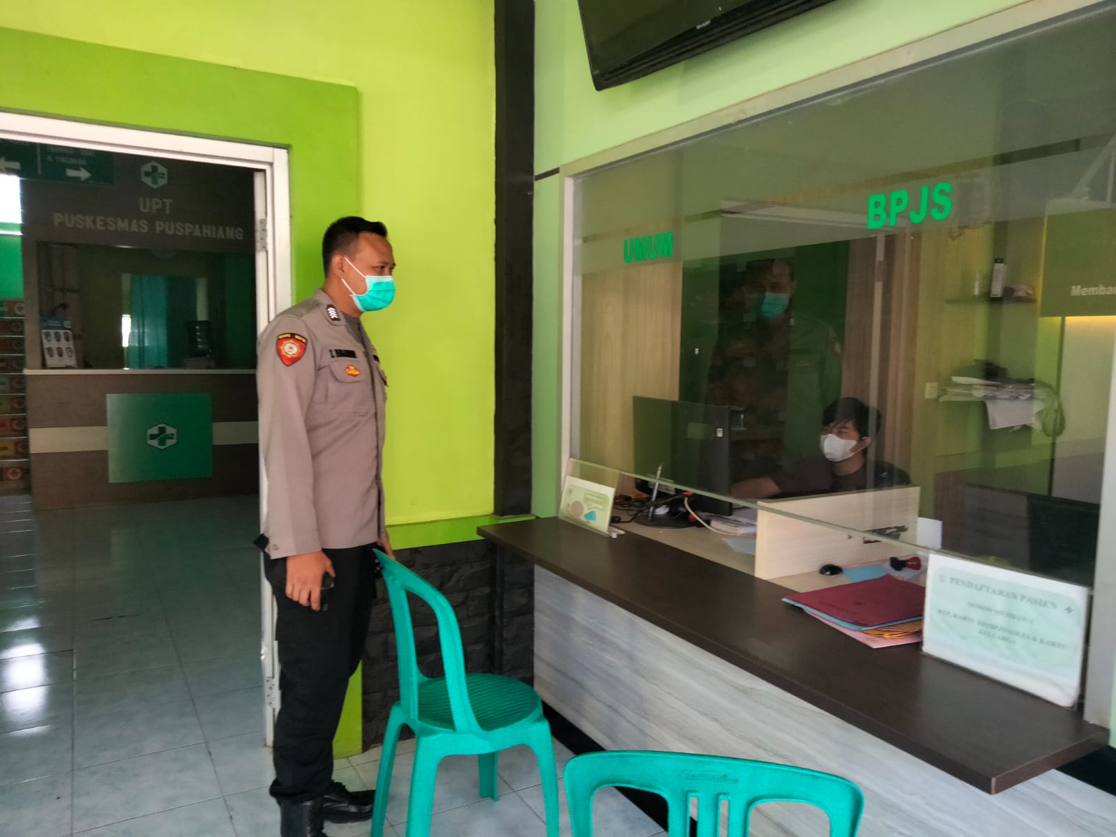 Kapolsek Puspahiang AKP Asep Nurjaman didampingi Kanit Samapta Aiptu Munawir dan Bripka Eko telah melaksanakan giat monitoring vaksinasi di Desa Puspasari.