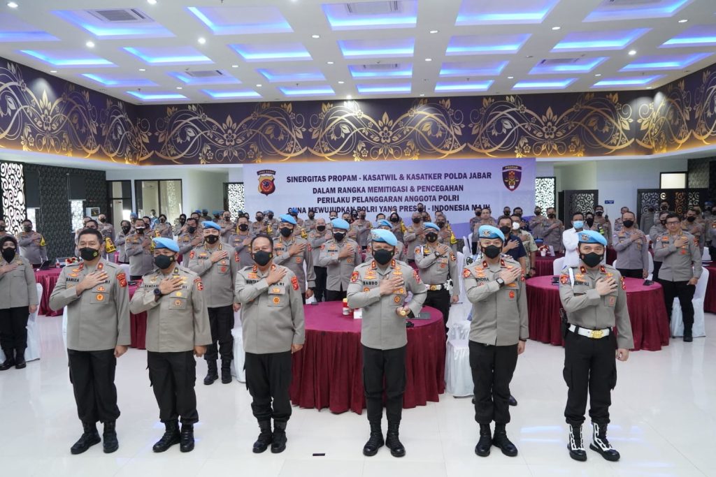 INOVATIF89.COM, TASIKMALAYA – Kapolda Jabar Irjen Pol Drs. Suntana., M.Si. memimpin kegiatan sinergitas Propam dengan Kasatwil dan Kasatker Polda Jabar dalam rangka memitigasi dan pencegahan perilaku pelanggaran anggota Polri guna mewujudkan Polri yang Presisi, bertempat di Mapolda Jabar, Jumat (08/04/2022).