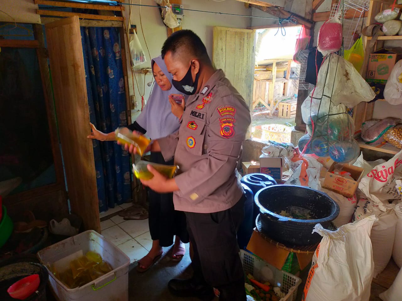 Babinkamtibmas Bripka Uut kuswendi secara langsung melakukan monitoring ketersediaan minyak goreng curah di Warung dan Toko di wilayah hukum Polsek Cikalong, Polres Tasikmalaya Polda Jabar, Kamis (07/04/2022).