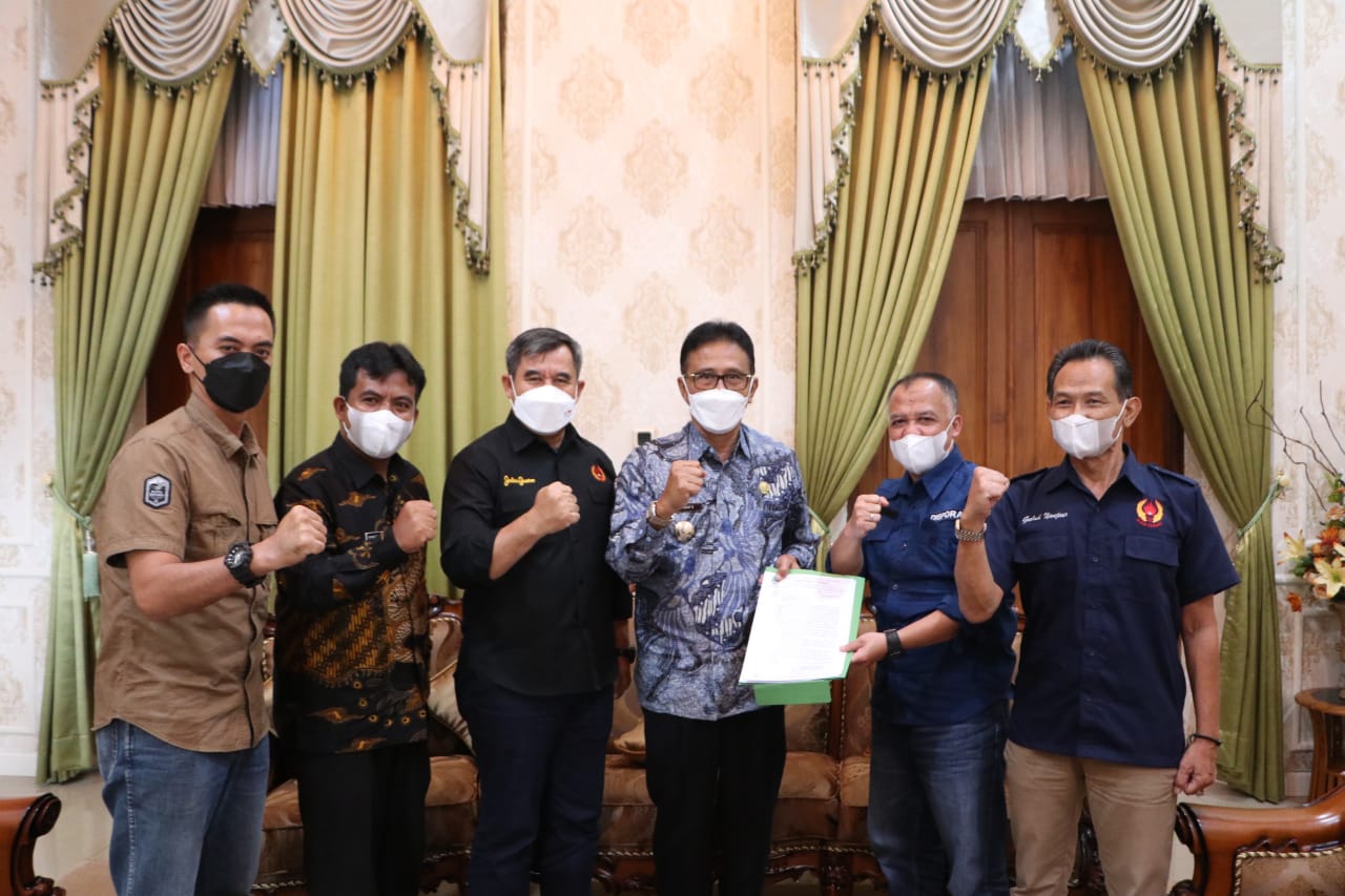 SK Gubernur Jawa Barat diserahkan oleh Ketua Umum KONI Provinsi Jawa Barat didampingi Kadispora Jabar dan diterima secara langsung oleh Bupati Ciamis Herdiat Sunarya didampingi Ketua Umum KONI Ciamis Yasmin Sambas dan Kadispora Ciamis Erwan Darmawan di Pendopo Bupati Ciamis, Kamis (21/04/2022).