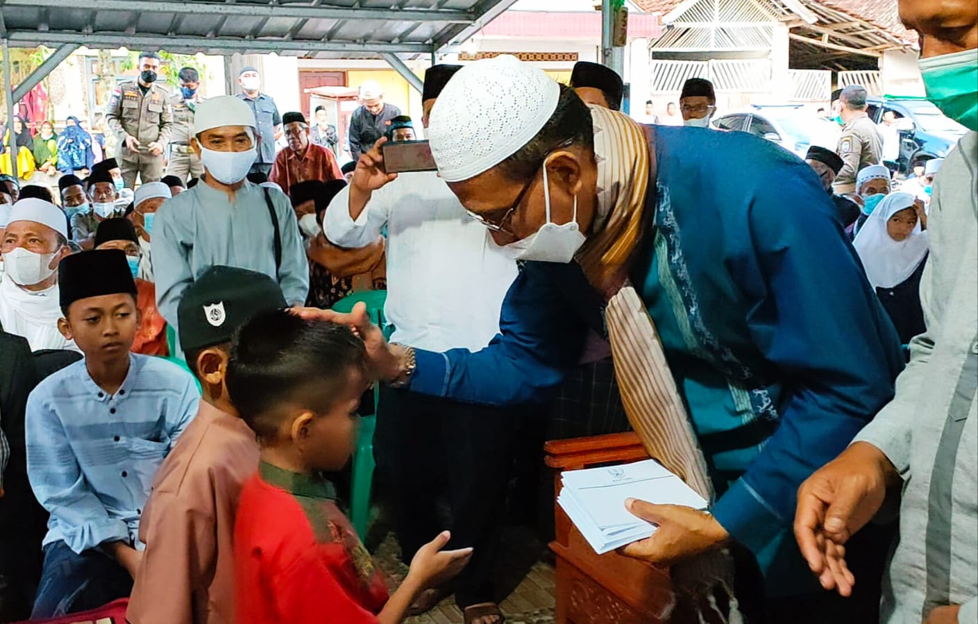 INOVATIF89.COM, CIAMIS – Bupati Ciamis Herdiat Sunarya menghadiri kegiatan santunan anak yatim di halaman Masjid Baitul Fatimah Desa Margajaya Kecamatan Sukadana Kabuaten Tasikmalaya Jawa Barat, Sabtu (30/04/2022) pagi.