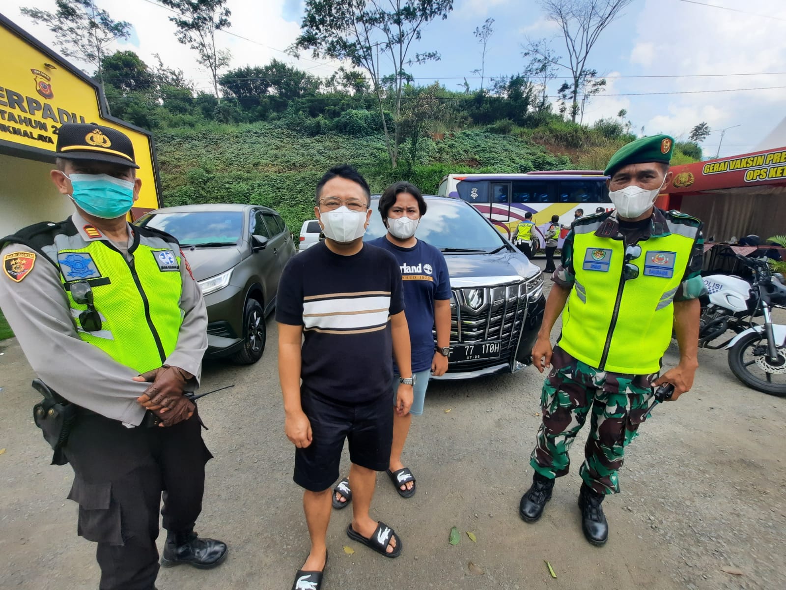 Seorang pria penumpang mobil mewah jenis Toyota Alphard yang berteriak memaki Polisi (tengah) saat menyampaikan permohonan maaf. Bid Humas Polda Jabar - Humas Polres Tasikmalaya Kota // 0089