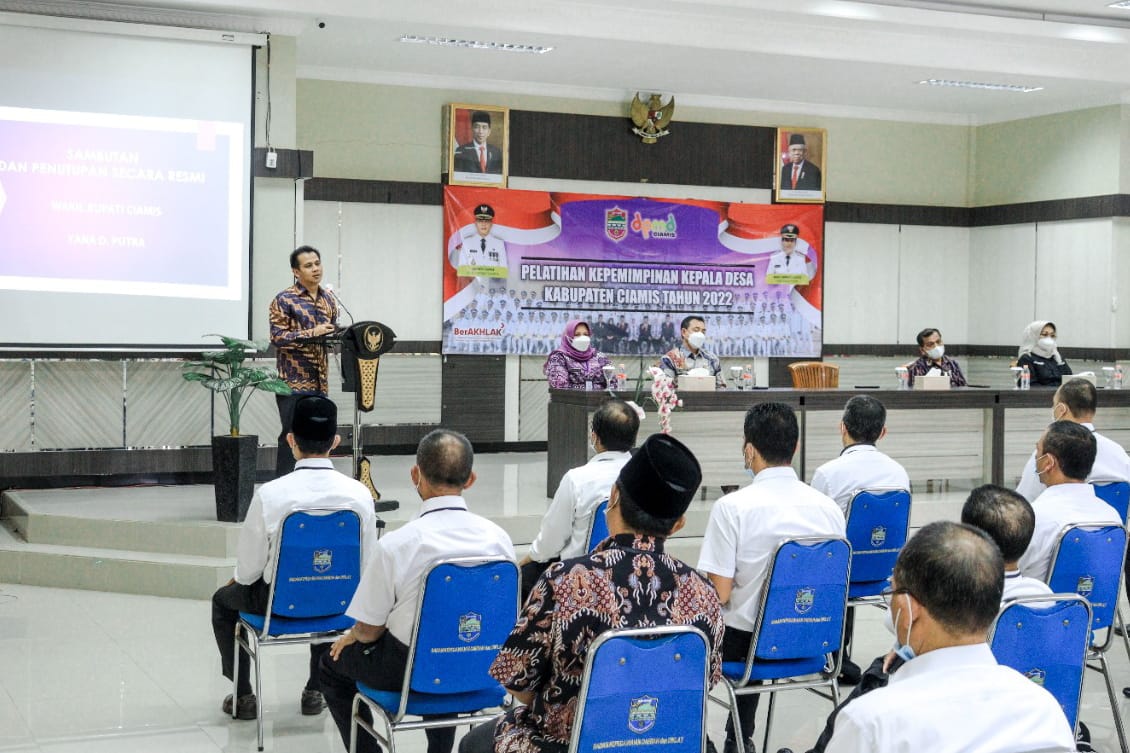 CIAMIS – Wakil Bupati (Wabup) Ciamis Yana D Putra menutup secara resmi kegiatan pelatihan kepemimpinan bagi Kepala Desa di Lingkungan Pemkab Ciamis Tahun 2022, bertempat di Aula BKPSDM Ciamis Jawa Barat, Kamis (02/06/2022).