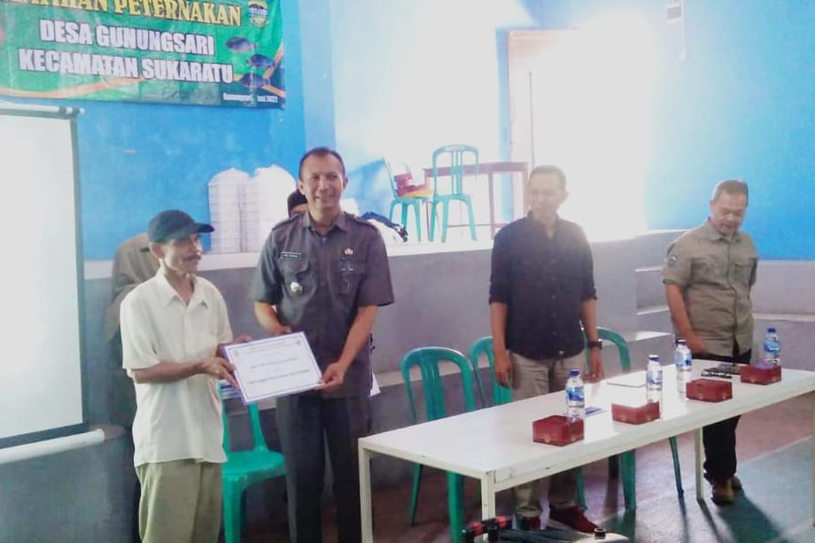 Bantuan yang bersumber dari Dana Desa tahun anggaran 2022 tersebut berupa ikan dan unggas, secara simbolis berikan oleh Camat Sukaratu Drs. Asep Suhendar kepada para ketua kelompok.