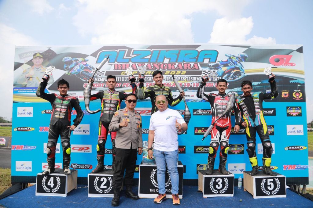TASIKMALAYA – Sambut HUT Bhayangkara Ke -76, Kapolres Tasikmalaya Kota AKBP Aszhari Kurniawan SH., S.IK., M.Si, membuka Al Zikra Bhayangkara Cup Race 2022 di Sirkuit Bukit Peusar Kecamatan Mangkubumi Kota Tasikmalaya Jawa Barat, Minggu (19/06/2022).