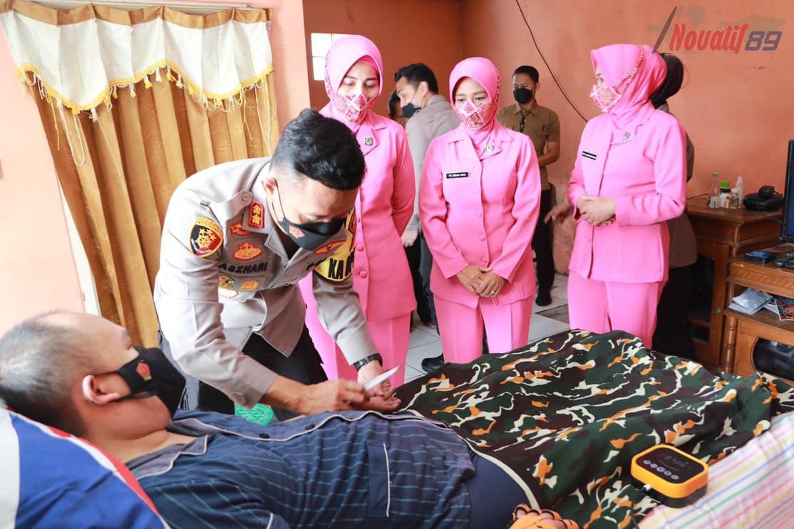 Saat mengunjungi Personil Polri aktif yang sakit menahun, Kapolres turut prihatin dan memberikan support agar selalu diberikan kesabaran dan ketabahan.