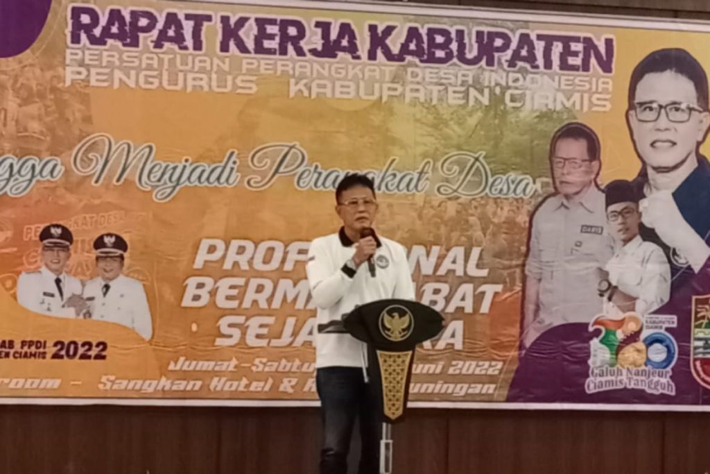 Hal tersebut dikatakan Bupati Ciamis Herdiat Sunarya dalam sambutannya, saat membuka secara resmi Rapat Kerja Kabupaten (Rakerkab) Persatuan Perangkat Desa Indonesia (PPDI) Ciamis tahun 2022, bertempat di Philip Balroom Sangkan Hotel dan Resort Jl. Panawuan-Sangkanurip Desa Panawuan Kecamatan Cigandamekar Kabupaten Kuningan Jawa Barat, Jum’at (24/06/2022).