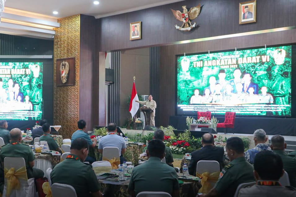 INOVATIF89.COM – Menteri Pertahanan (Menhan) RI Prabowo Subianto menghadiri Seminar TNI AD VI yang dibuka secara resmi oleh Kepala Staf Angkatan Darat (Kasad) Jenderal TNI Dudung Abdurachman di Sekolah Komando Angkatan Darat (Seskoad) Bandung, Jawa Barat, Senin (27/06/2022).