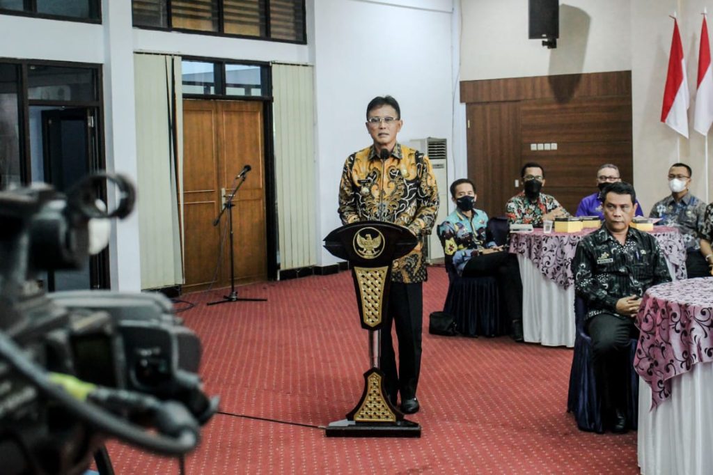 INOVATIF89.COM – Bupati Ciamis Herdiat Sunarya mengikuti acara rapat evaluasi pelaksanaan Yanlik Fest 2022 bersama Ombudsman RI Perwakilan Jawa Barat secara virtual, di Aula Sekretariat Daerah Kabupaten Ciamis, Kamis (30/06/2022).