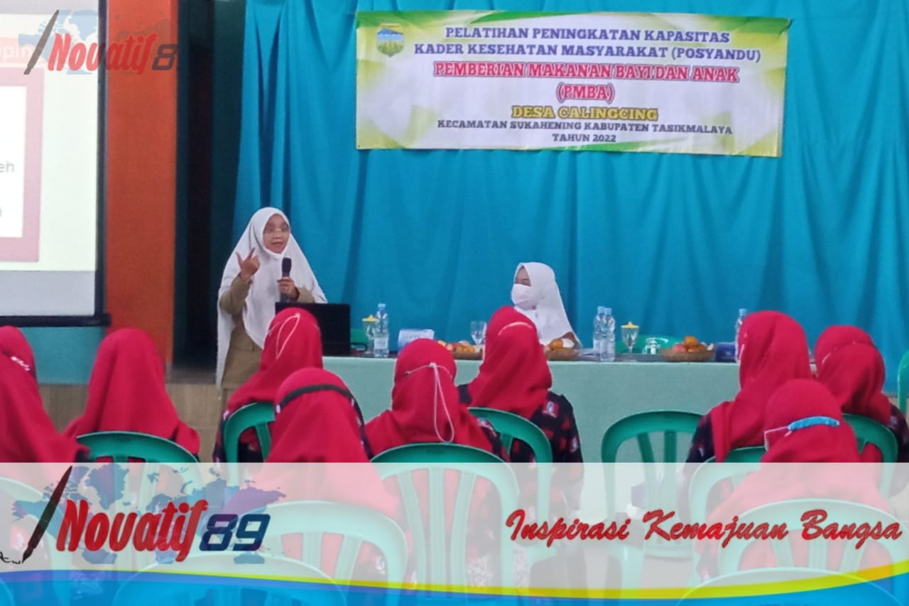 INOVATIF89.COM – Pemerintah Desa (Pemdes) Calingcing menggelar peningkatan kapasitas Kader Kesehatan Masyarakat (Posyandu) Pemberian Makanan Bayi dan Anak (PMBA), bertempat Gor Desa Calingcing, Kecamatan Sukahening, Kabupaten Tasikmalaya, Senin (04/07/2022).