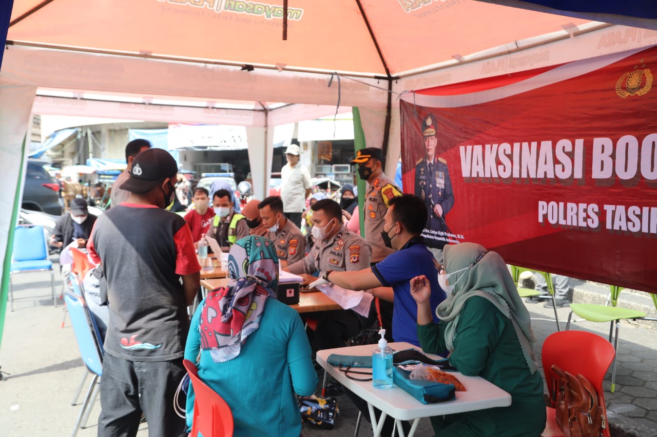 Kapolres Tasikmalaya Kota AKBP Aszhari Kurniawan, S.H., S.I.K., M.Si, mengatakan bahwa pihaknya kembali menggelar Vaksinasi dengan turun ke titik keramaian untuk menjaring warga yang belum melaksanakan Vaksin, khususnya Booster.