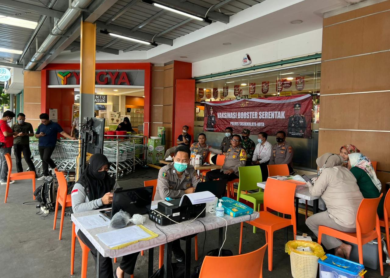 Kapolres Tasikmalaya Kota AKBP Aszhari Kurniawan, S.H., S.I.K., M.Si mengatakan, bahwa Gerai Vaksinasi Booster Polres Tasikmalaya Kota akan terus di gelar di tempat-tempat keramaian.