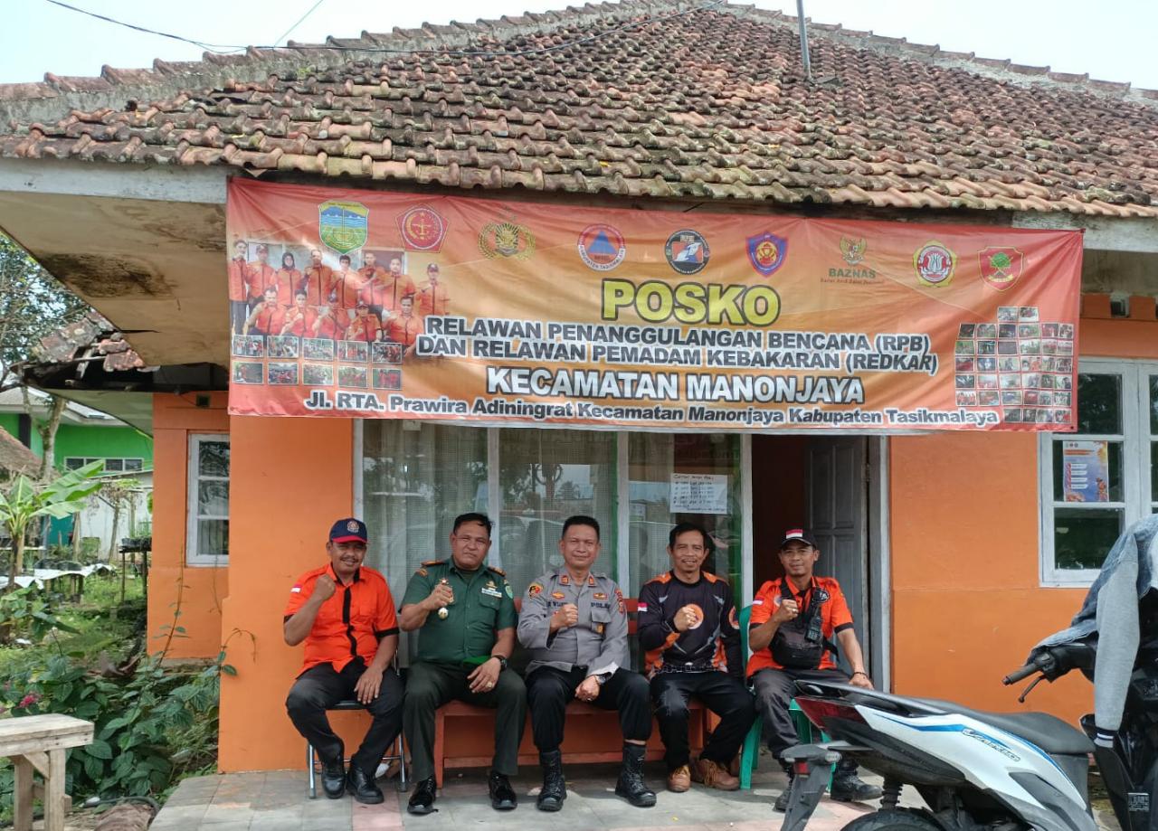 Kapolsek Bersama Danramil Manonjaya Sambangi Posko Siaga BPBD, Silaturahmi Kamtibmas
