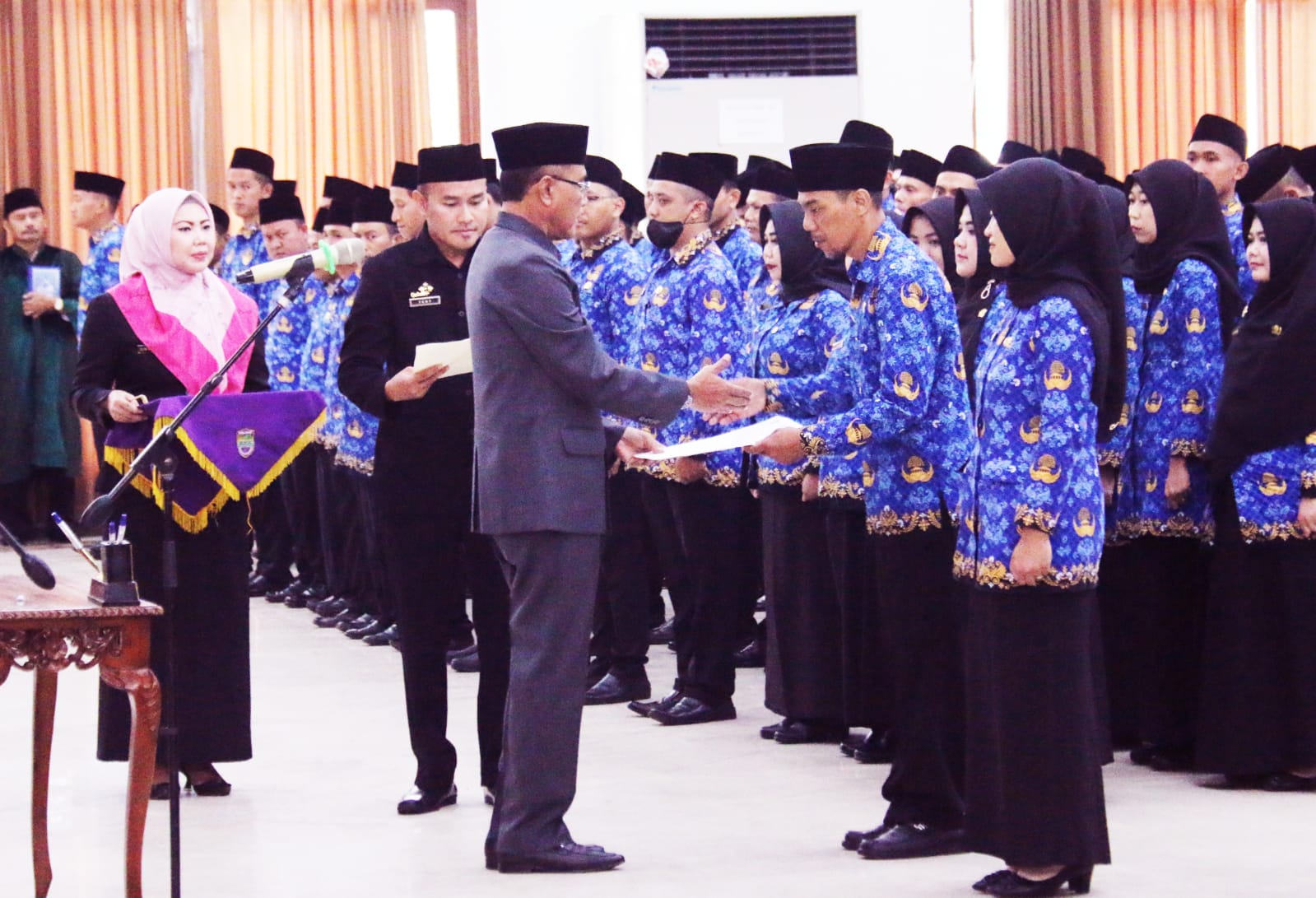 INOVATIF89.COM – Bupati, Herdiat Sunarya melantik dan mengambil sumpah 1.159 orang Pegawai Pemerintah dengan Perjanjian Kerja (PPPK) Formasi Tahun 2022 Kabupaten Ciamis, di Gedung KH. Irfan Hielmy Kabupaten Ciamis, Senin (24/07/2023).
