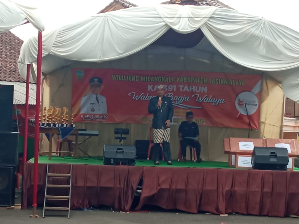Dalam sambutannya, Camat Ucu mengatakan, hari ini kita sama-sama melaksanakan rangkaian kegiatan tasyakur bin ni’mah dalam rangka Milangkala ke 391 Kabupaten Tasikmalaya, mensyukuri apa yang telah kita nikmati bersama setelah 391 tahun yang lalu Kabupaten Tasikmalaya di dirikan.