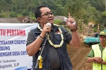 INOVATIF89.COM – Bupati Tasikmalaya, H. Ade Sugianto, S.IP, meletakan batu pertama pembangunan Jembatan Cisepet Kecamatan Cikatomas, Kabupaten Tasikmalaya, Jum’at (04/08/2023).