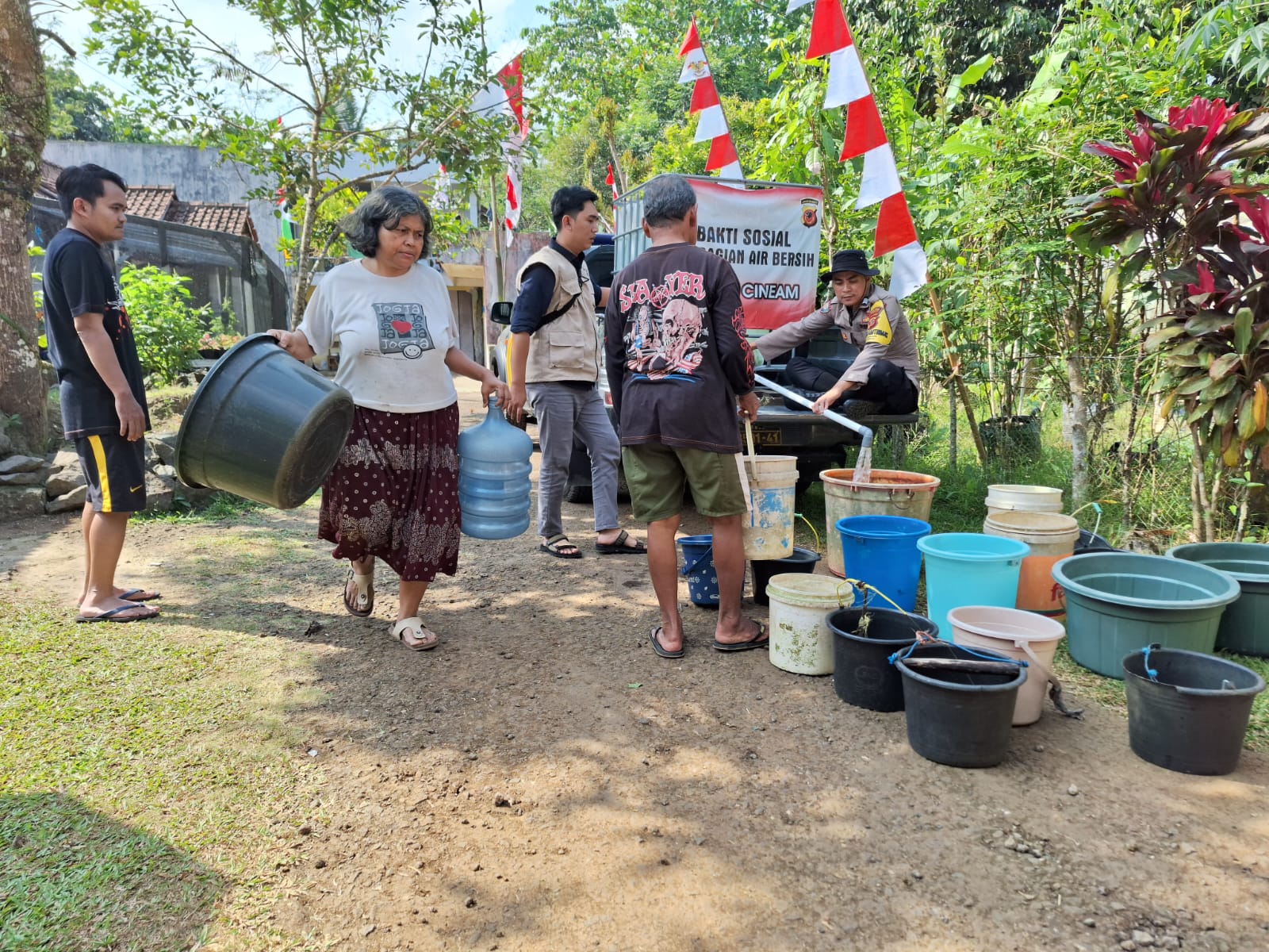 “Air bersih yang kami distribusikan berasal dari air sumur yang ada di Mapolsek Cineam,” imbuhnya.