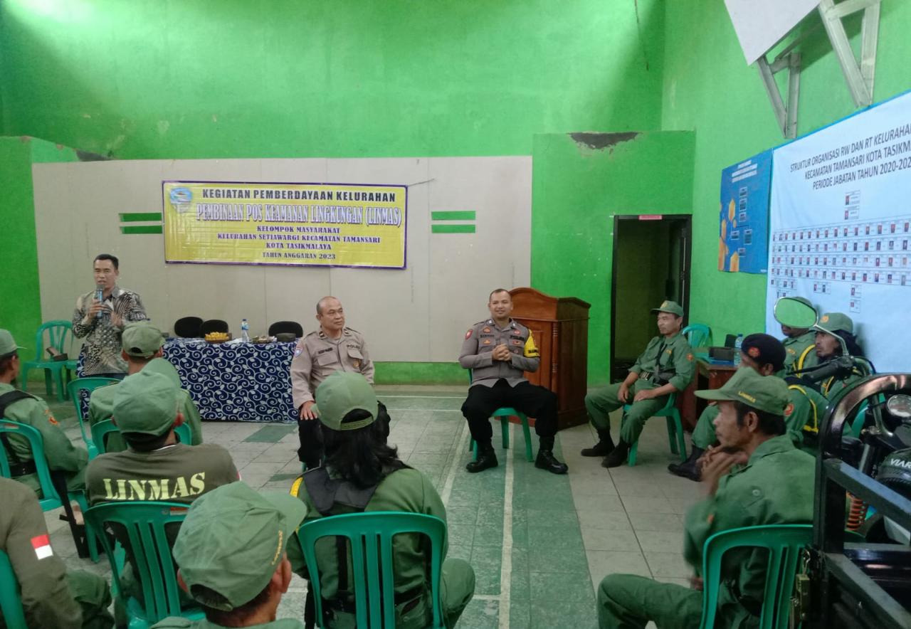 INOVATIF89.COM – Polsek Tamansari, Polres Tasikmalaya Kota melaksanakan program Ngariung Sabari Ngobrol (NGASO) dengan memberikan pembinaan kepada Satuan Perlindungan Masyarakat (Satlinmas) Kelurahan Setiawagi, di Gor Kelurahan Setiawagi, Kecamatan Tamansari, Kota Tasikmalaya, Kamis (10/08/2023).
