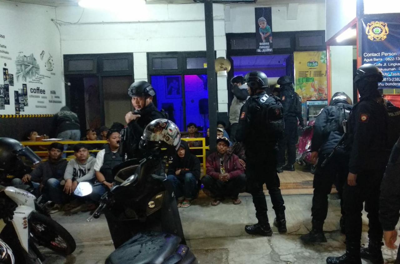 INOVATIF89.COM – Tim Maung Galunggung Polres Tasikmalaya Kota mengamankan 20 remaja yang kedapatan sedang pesta minuman keras (Miras) di Sebuah Kafe, di Jalan Dadaha Kecamatan Cihideung, Kota Tasikmalaya, Minggu (13/08/2023) dinihari.