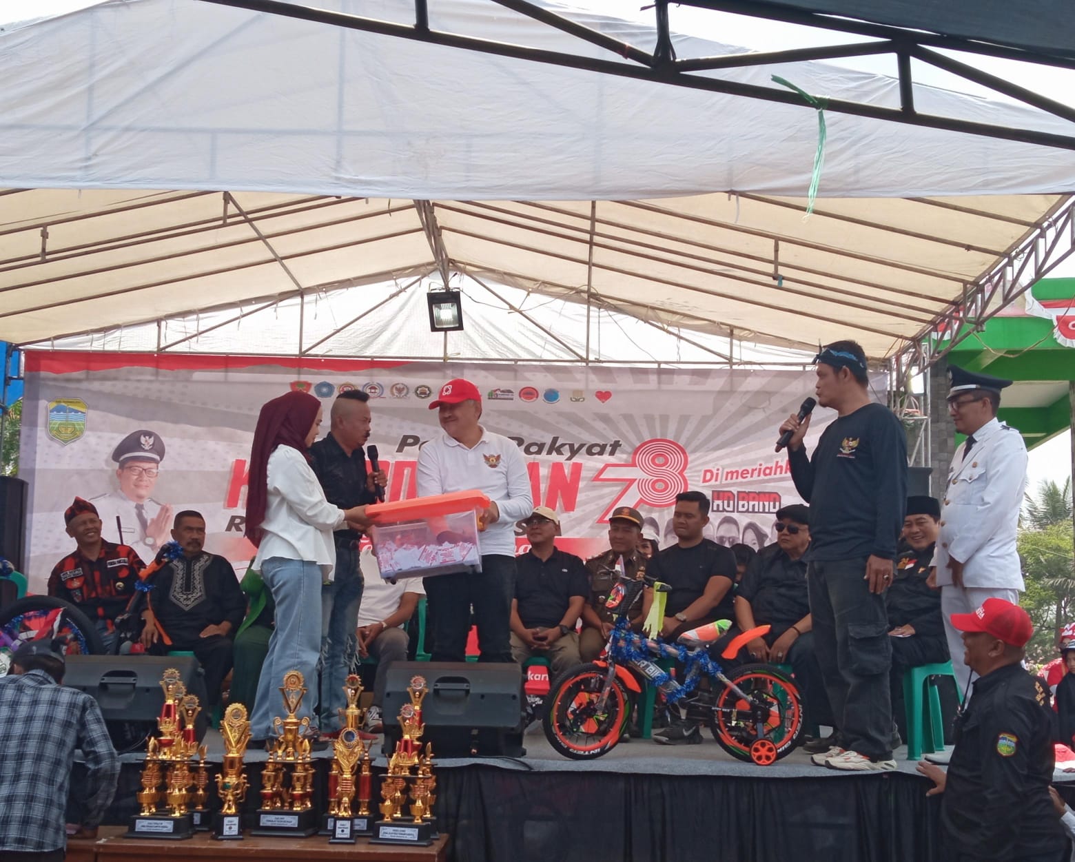 INOVATIF89.COM – Asisten Daerah (Asda) 2 Perekonomian dan Pembangunan Kabupaten Tasikmalaya, Drs. Rahayu Jamiat Abdullah, S.Sos, M.Si, menghadiri puncak Pesta Rakyat di Desa Tawangbanteng, Kecamatan Sukaratu, Kabupaten Tasikmalaya, Minggu (27/08/2023) siang.