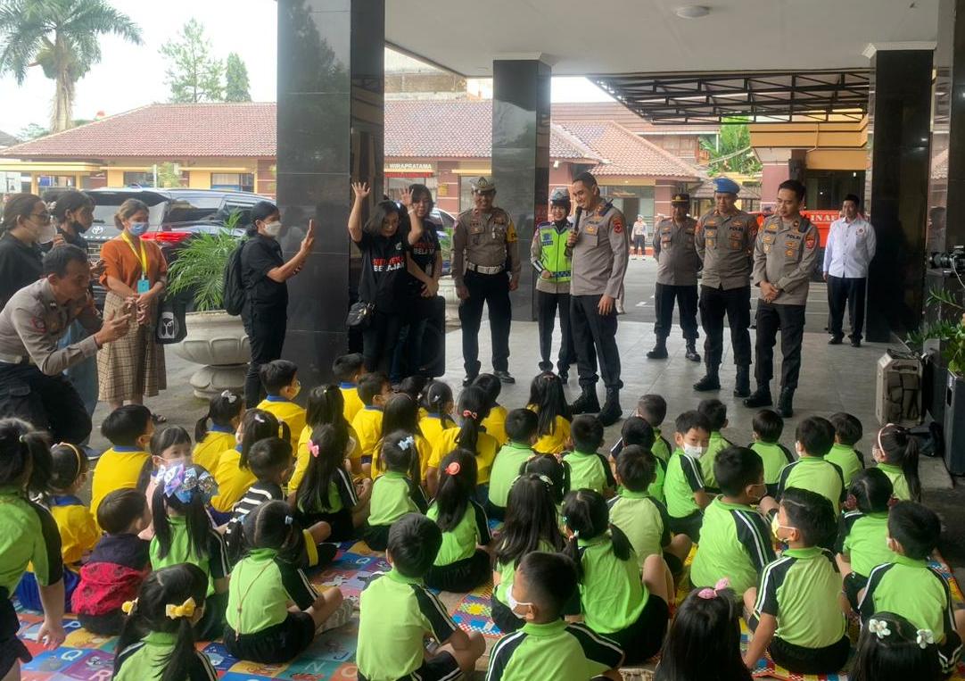 Dijelaskan Kapolres, penyampaian materi melalui pendekatan yang disesuaikan dengan kebutuhan psikologi anak usia dini, sehingga dapat menghilangkan trauma anak untuk tidak takut Polisi.