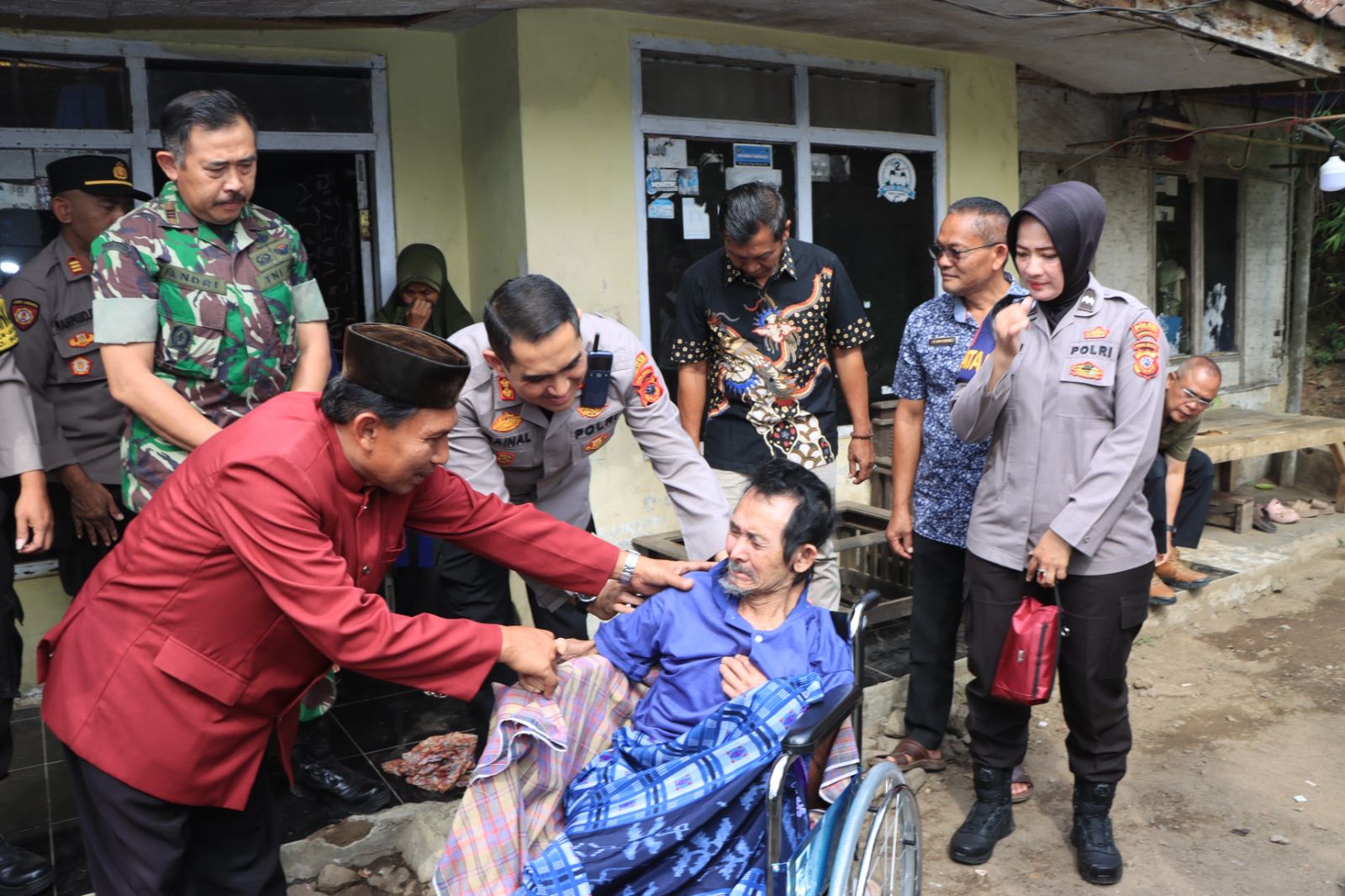 Kapolres Tasikmalaya Kota AKBP SY Zainal Abidin, dan Wakapolres KOMPOL Dhoni Erwanto, didampingi PJU Polres Tasikmalaya Kota dan Forkopimcam menyerahkan secara langsung kursi roda dan paket sembako kepada seorang berkebutuhan khusus bernama Bapak Iing (63) tahun.