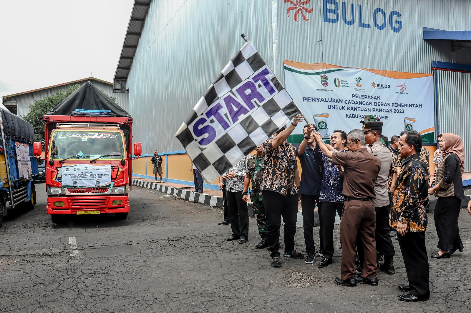 INOVATIF89.COM – Wakil Bupati (Wabup) Ciamis, H. Yana D Putra melepas 1.922 ton bantuan pangan beras tahap ke -II bekerjasama dengan Bulog, di Gudang Bulog Kabupaten Ciamis, Kamis (21/09/2023).